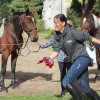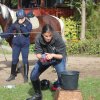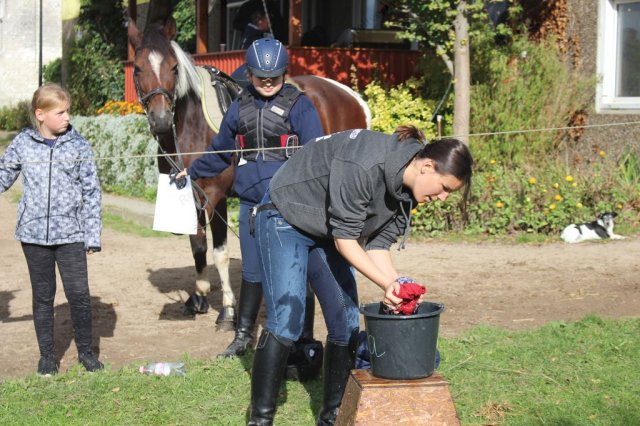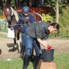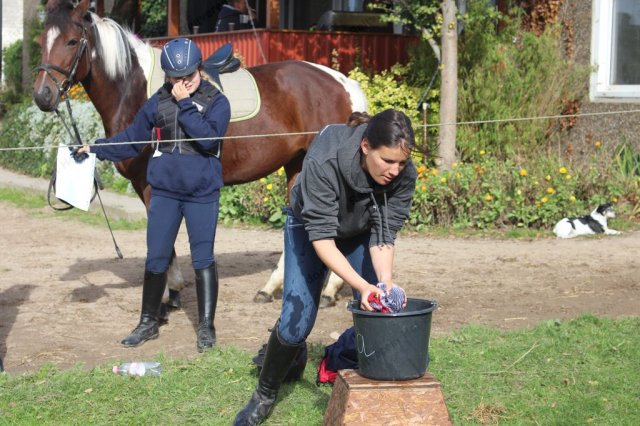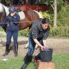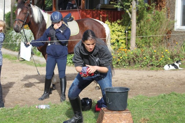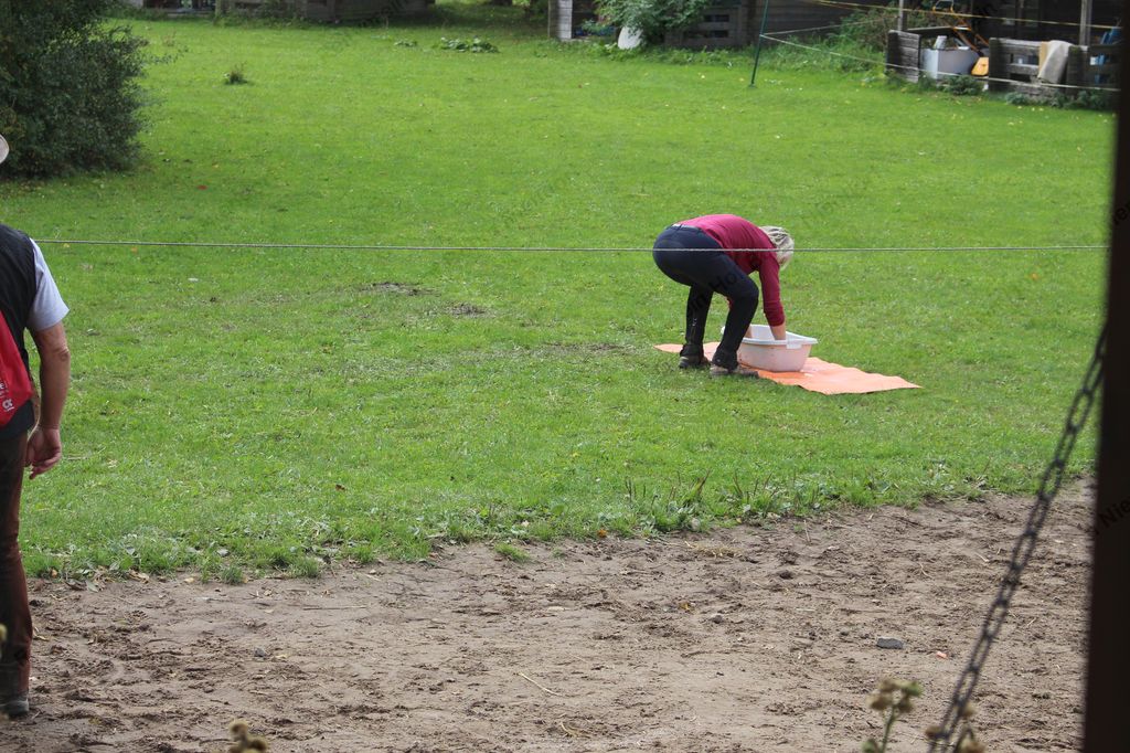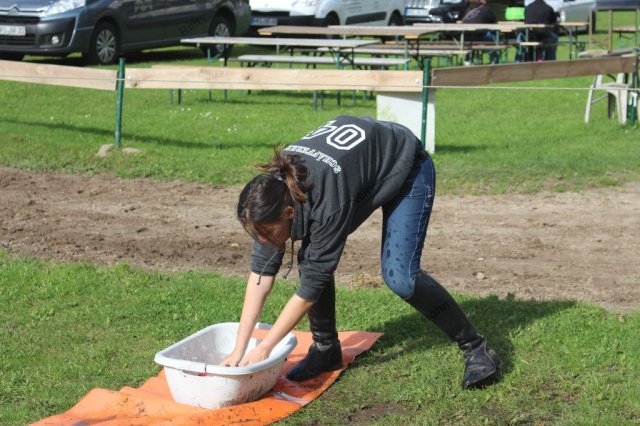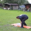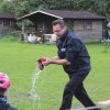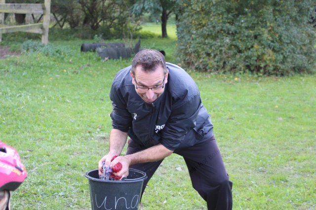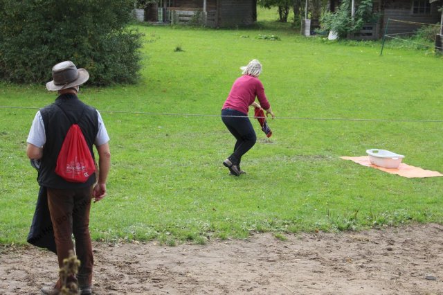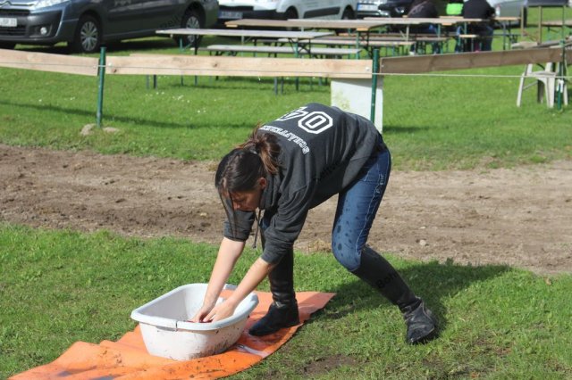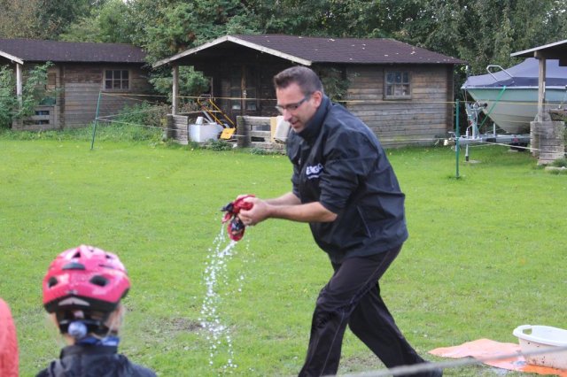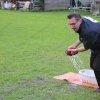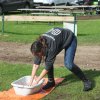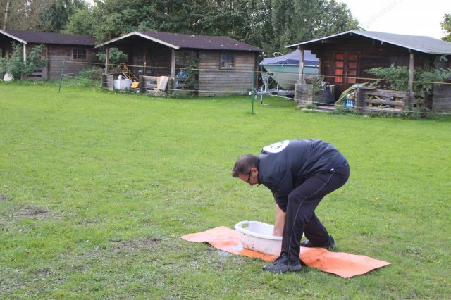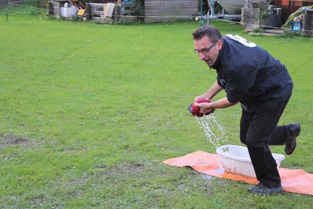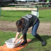 Hier galt es, in einer Minute möglichst viel Wasser mit einem Handtuch aus der Wanne in den Eimer zu bringen.
