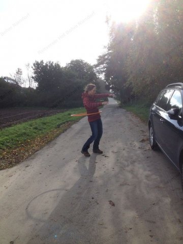 Radler mußten den Reifen um die Hüfte kreisen lassen.