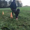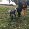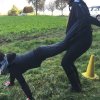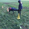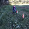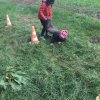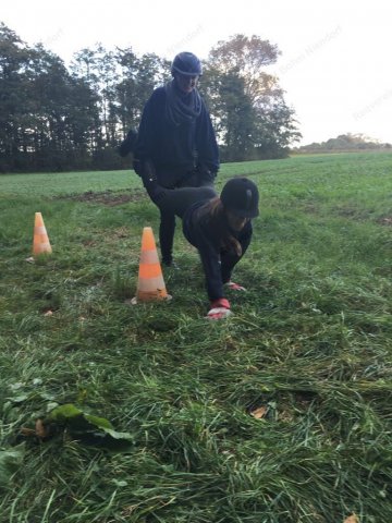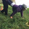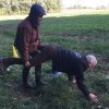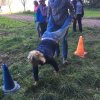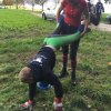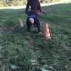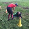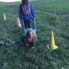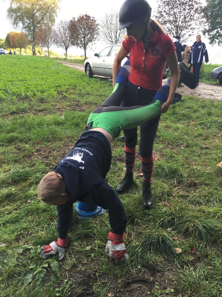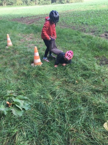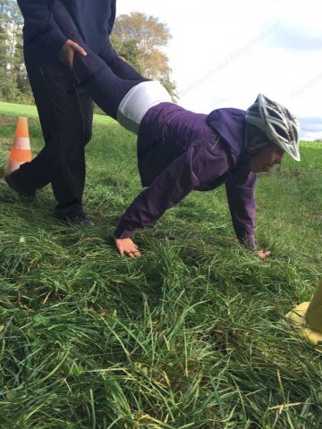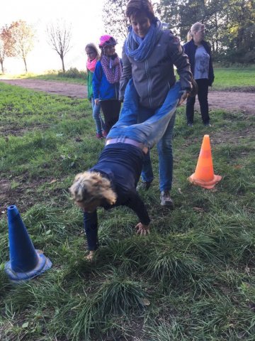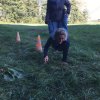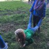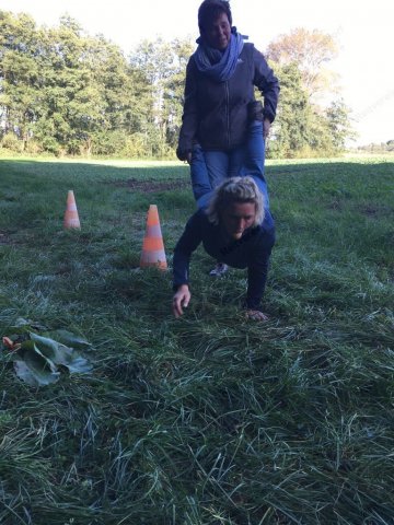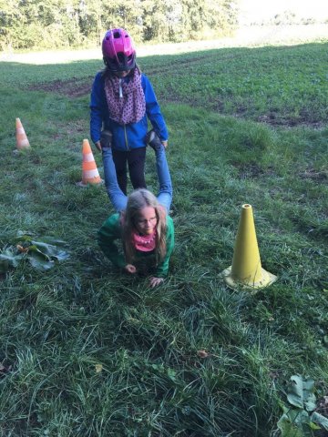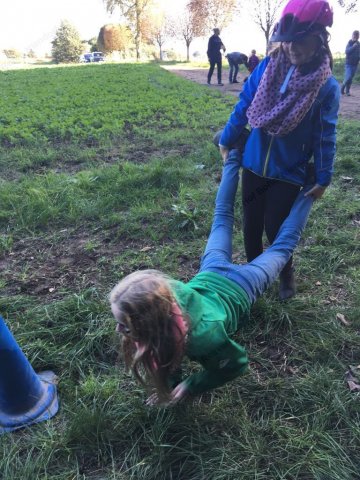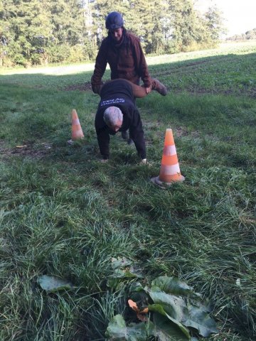 Mit einer menschlichen Schubkarre mußte hier ein rohes Ei durch einen Slalom gebracht werden.