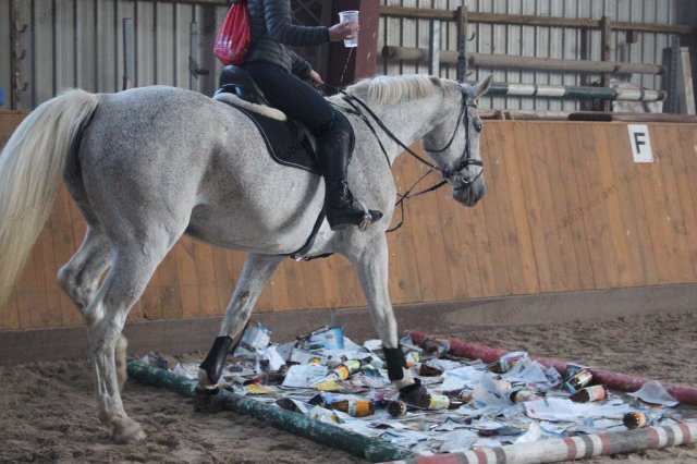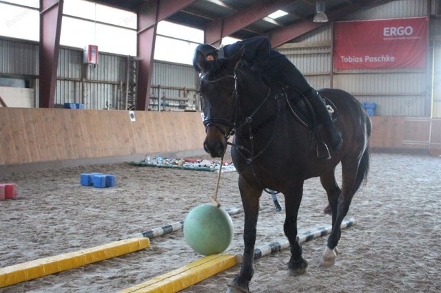 Nur für Reiter:  Ein Vertrauens- und Geschicklichkeits-Parcour war für einen Reiter zu durchreiten, in der Hand einen Becher mit Wasser drin - und einem Loch im Becherboden.