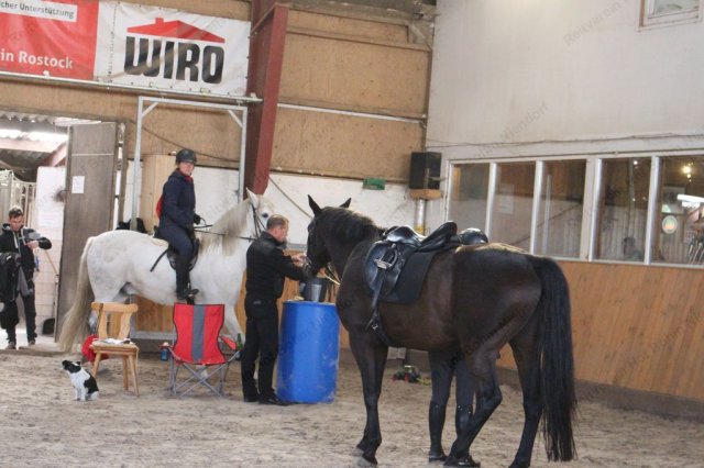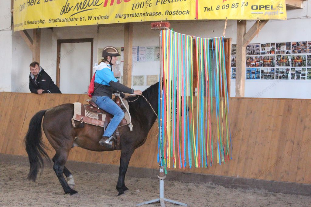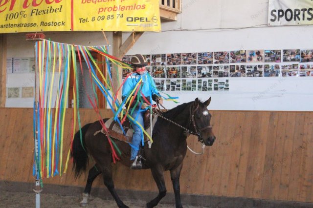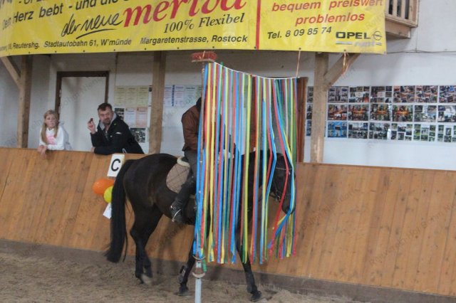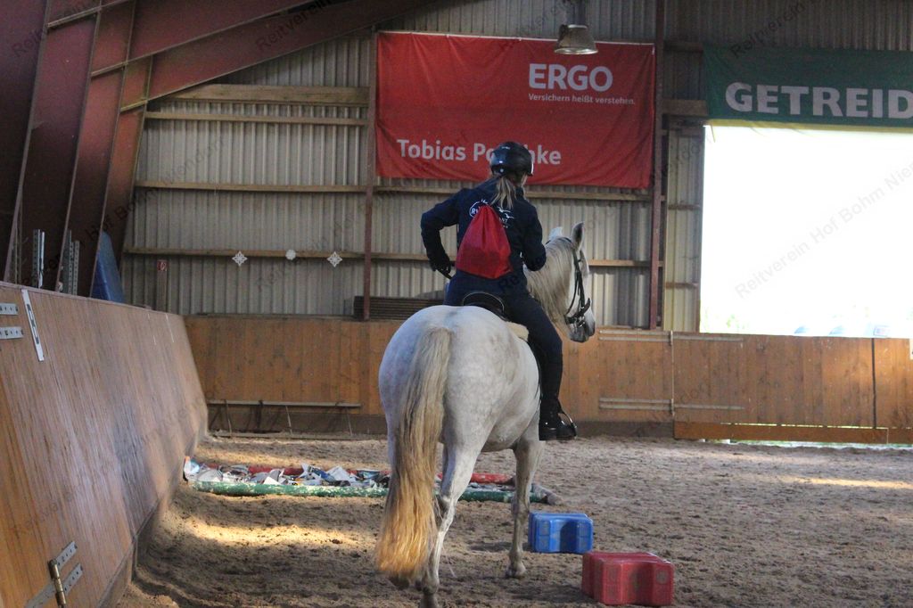 Nur für Reiter:  Ein Vertrauens- und Geschicklichkeits-Parcour war für einen Reiter zu durchreiten, in der Hand einen Becher mit Wasser drin - und einem Loch im Becherboden.